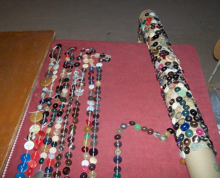 Děti z okolí i vzdálenějších míst začaly posílat a přinášet navlečené knoflíky, už se jich sešla dlouhá šňůra.